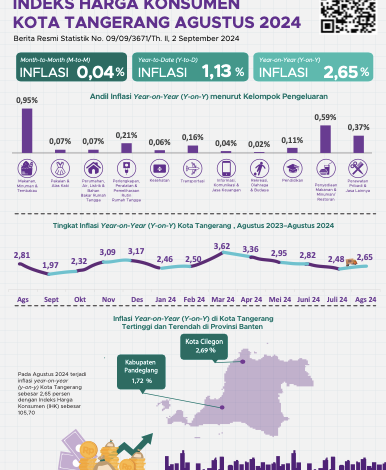 Asisten Daerah Bidang Ekonomi dan Pembangunan Kota Tangerang Ruta Ireng Wicaksono menuturkan, berdasarkan data yang dirilis Badan Pusat Statistik (BPS) Kota Tangerang, indeks inflasi pada Agustus 2024 mengalami sedikit kenaikan dari bulan sebelumnya.