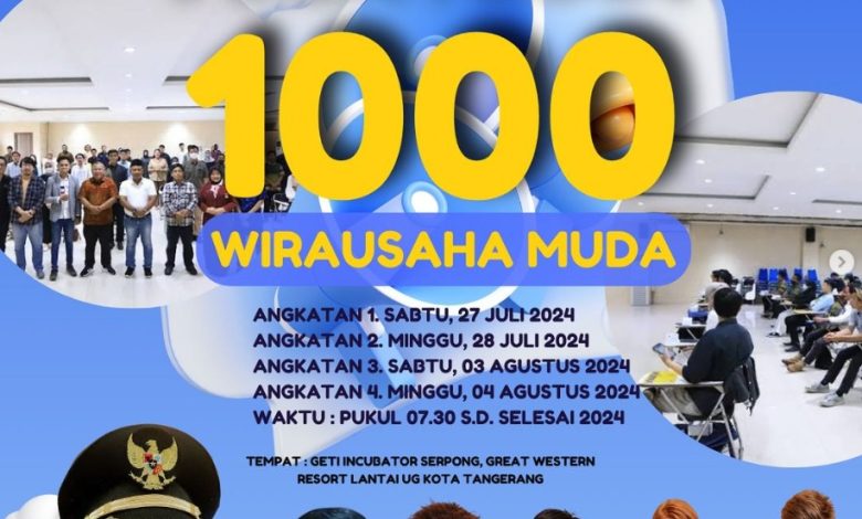 KOTA TANGERANG,- Memaksimalkan potensi anak-anak muda di Kota Tangerang khususnya wirausahawan muda, Pemerintah Kota (Pemkot) Tangerang melalui Dinas Pemuda dan Olahraga (Dispora) berkolaborasi dengan GeTi Incubator menggelar pelatihan bagi 1.000 wirausaha muda. Pelatihan akan dimulai pada 27 Juli 2024 mendatang di GeTi Incubator, Serpong.