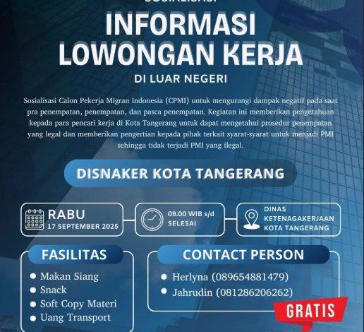 Disnaker Kota Tangerang Buka Pendaftaran Sosialisasi Lowongan Kerja Luar Negeri