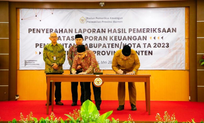 KOTA SERANG,- Pemerintah Kota Tangerang Selatan kembali meraih opini Wajar Tanpa Pengecualian (WTP) ke 12 kali berturut – turut. Laporan Hasil Pemeriksaan (LHP) diserahkan langsung oleh Kepala Perwakilan BPK RI Provinsi Banten, Dede Sukarjo kepada Wali Kota dan Ketua DPRD Tangerang Selatan di Kantor BPK RI Perwakilan Provinsi Banten, Serang, pada Selasa (07/05/2024). Sekalgus merupakan penetapan opini WTP atas LKPD Kota Tangsel 2023.