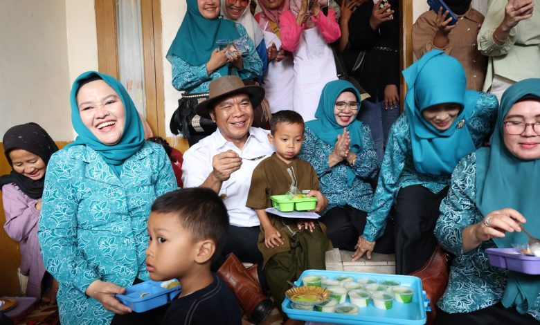 Pada kesempatan itu, Pj Ketua TP PKK Provinsi Banten Tine Al Muktabar bersama Pj Gubernur Banten Al Muktabar meninjau Dapur PKK di Graha Cipacung RW 10, Kelurahan Saruni, Kecamatan Majasari, Kabupaten Pandeglang. Dua anak yang disuapi menu Dapur PKK nampak lahap memakannya. (*)