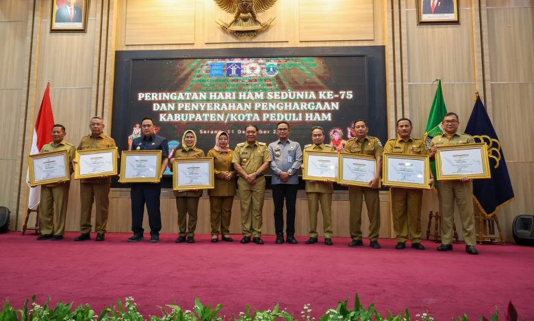 “Selamat atas segala prestasi yang dicapai. Pencapaian-pencapaian yang kita dapat ini hasil kerjasama kita semua,” ungkap Al Muktabar saat memberikan sambutan pada Peringatan Hari HAM se-Dunia ke-75 dan Penyerahan Penghargaan Kabupaten/ Kota Peduli HAM di Pendopo Gubernur Banten, Senin (11/12/2023).
