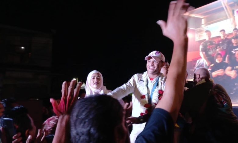 KOTA SERANG,- Ratusan masyarakat Kota Serang menyambut kedatangan Rizki Juniansyah putra terbaik Kota Serang yang berhasil mereraih Mendali Emas di Olimpiade 2024 Paris pada Cabang Olahraga (Cabor) Angkat Besi Kelas 73 Kilogram.