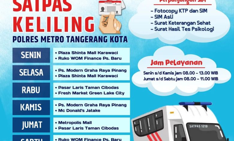 Berikut ini adalah jadwal dan lokasi SIM keliling di Kota Tangerang