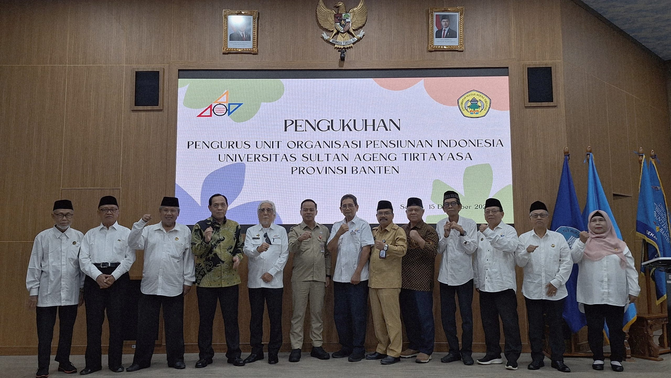 KOTA SERANG,- Kepala Badan Kesatuan Bangsa dan Politik(Bakesbangpol) Provinsi Banten Novriyadi Purwansyah, S.IP., M.Si mewakili Gubernur Banten memberikan sambutan pada acara Pengukuhan Paguyuban Purna Bakti Universitas Sultan Ageng Tirtayasa (UNTIRTA) yang merupakan Unit Organisasi Pensiunan Indonesia dari PPI Provinsi Banten dan HUT PPI Banten ke III, Senin (15/12/2025) di Ruang Multimedia Gedung Rektorat Lt. 1 UNTIRTA, Pabuaran, Serang.