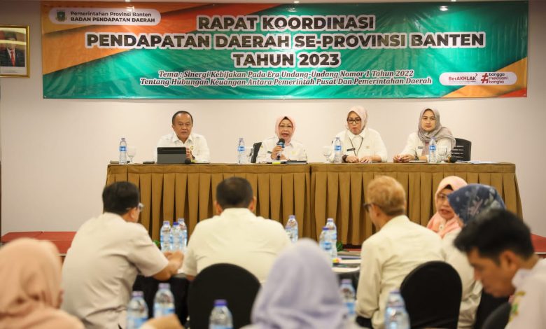 KOTA SERANG,- Penjabat (Pj) Sekretaris Daerah Provinsi Banten Virgojanti mengatakan, tujuan optimalisasi pendapatan daerah untuk pembiayaan pembangunan dan pelayanan masyarakat yang lebih baik. Pemerintah Provinsi Banten bersama Pemerintah Kabupaten/Kota menjalin komunikasi dan sinergi dalam optimalisasi pendapatan daerah. Pada tahun 2023, target pendapatan Pemprov Banten sekitar Rp8,3 triliun lebih, dari Pajak Kendaraan Bermotor (PKB) sekitar Rp5,7 triliun.