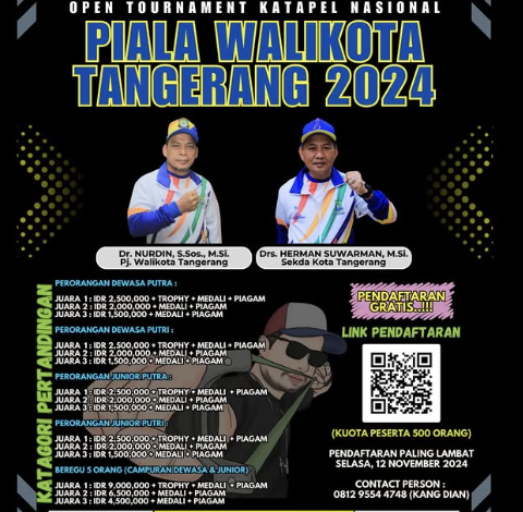 Selain itu, informasi lebih lanjut mengenai Kejuaraan Nasional Piala Wali Kota Tangerang 2024 bisa dilihat melalui @disporakotatangerang atau menghubungi 0812-9554-4748 (Dian).