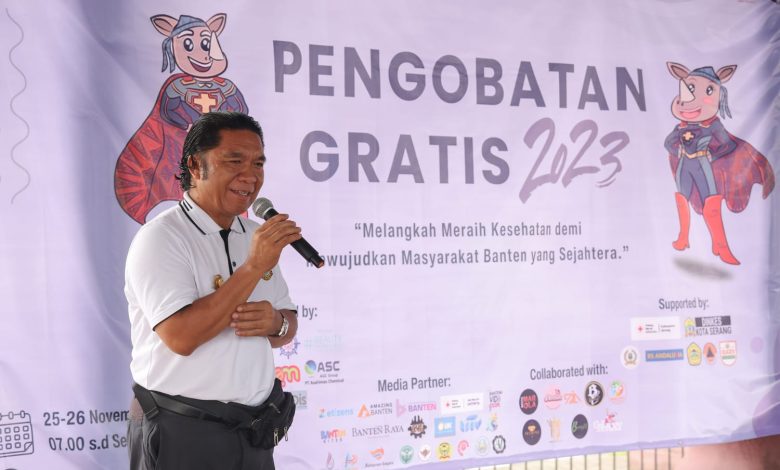 “Momen – momen seperti ini merupakan kolaborasi antara mahasiswa dan pemerintah yang sama-sama bertemu dengan masyarakat sebagai bukti pengabdiannya, dan implementasi dari langkah strategis dalam mengemban tugas terhadap masyarakat,” ungkap Al Muktabar seusai memberikan sambutan di acara Pengobatan Gratis yang diadakan Badan Eksekutif Mahasiswa (BEM) Kegiatan Belajar Mengajar (KBM) Universitas Sultan Ageng Tirtayasa (Untirta) di Alun – alun Barat Kota Serang, Sabtu (25/11/2023).