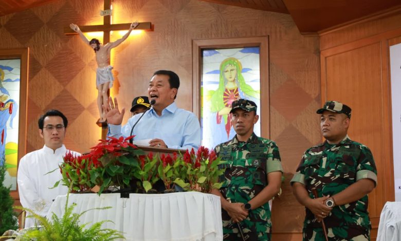“Kami dengan Pak Kapolres dan Pak Dandim, Pak Dansatradar dan kepala dinas melihat secara langsung pelaksanaan ibadah misa dan memastikan bahwa ibadah misa bagi umat Kristiani dalam perayaan Natal tahun 2025 dalam keadaan aman dan kondusif,” ujar Bupati Maesyal Rasyid