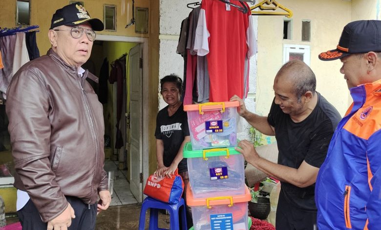 SETU,- Wali Kota Tangerang Selatan (Tangsel) Benyamin Davnie meninjau sekaligus memastikan bantuan dari Pemerintah Kota Tangerang Selatan terdistribusi dengan baik ke masyarakat terdampak luapan Sungai Cisadane.