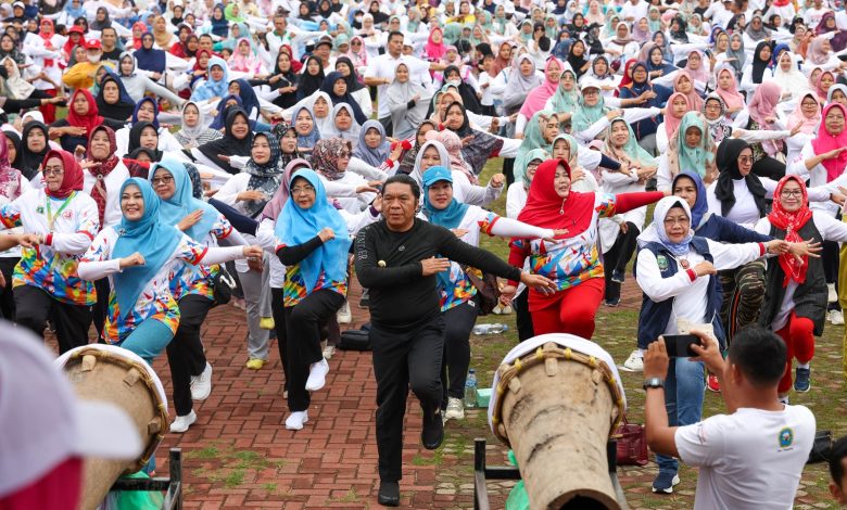 Pj Gubernur Banten Al Muktabar Senam Sehat Bersama Ribuan Guru dan Warga Kabupaten Pandeglang