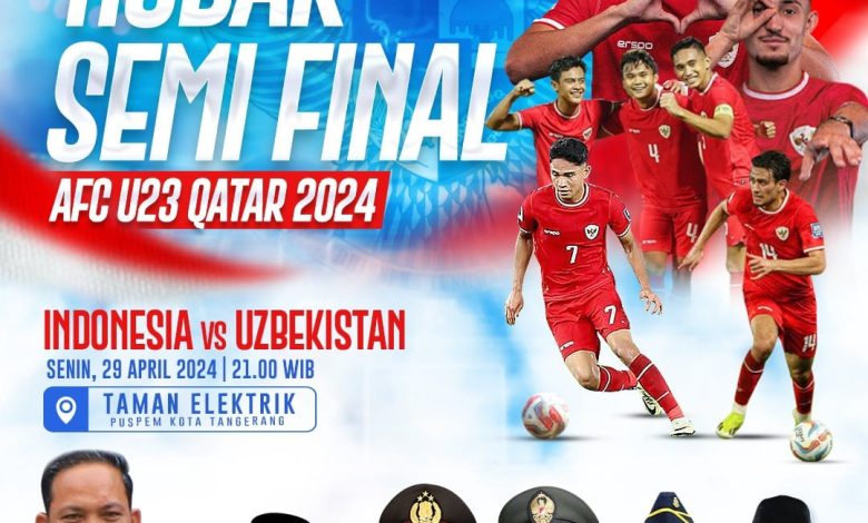 Mendukung Timnas Indonesia U-23 yang akan bertanding di babak semi final Piala Asia pada Senin, 29 April 2024 mendatang, Pemerintah Kota (Pemkot) Tangerang menyelenggarakan nonton bareng (nobar) di Taman Elektrik, pada pukul 21.00 WIB.