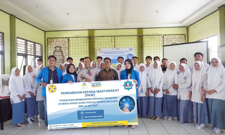 SERANG,- Mahasiswa program studi manajemen konsentrasi pemasaran Universitas Pamulang (Unpam) Kota Serang melaksanakan kegiatan Pengabdian Kepada Masyarakat (PKM) di Sekolah Menengah Kejuruan (SMK) Al Ma’arif, Kecamatan Cikande Kab.Serang Banten, pada Senin (27/10/2025).