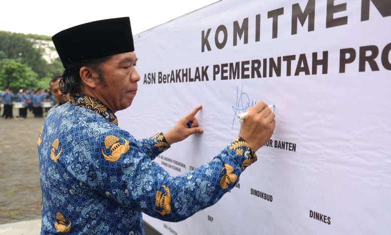 Pada kesempatan itu, juga dilakukan penandatangan Komitmen Bersama ASN Berakhlak dan Employer Branding Bangga Melayani Bangsa Pemerintah Provinsi Banten Oleh Seluruh Kepala OPD Provinsi Banten. (Efran)